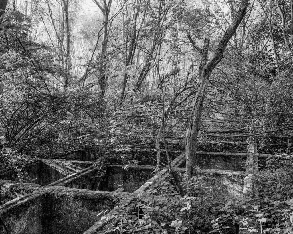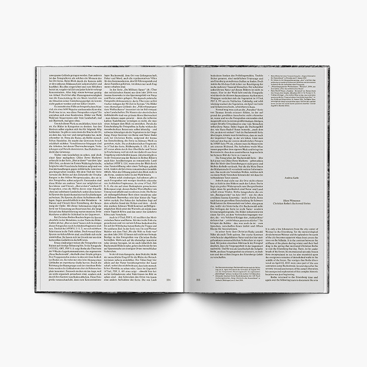 Le photographe Christian Rothe aura passé huit ans à traquer ces ruines presque invisibles sur la colline d’Ettersberg non loin de Weimar. Son travail a donné lieu à la publication par Hartmann Books d’un beau livre sobrement intitulé Buchenwald. A travers 119 photographies noir et blanc reproduites en bichromie, l’ouvrage donne à voir ces bois qui furent autrefois lieu de vie des bourreaux ou théâtre de l’horreur. Les grands formats argentiques de Rothe sont autant de tableaux d’une netteté saisissante servis par une qualité d’impression magistrale. La couverture du livre est enveloppée d’un filet de lin blanc qui a pour effet d’estomper les arbres de la photo qu’elle présente. Comme si la mémoire des événements dont fut témoin la colline d’Ettersberg, il y a quatre-vingts ans, s’estompait. Comme si la lecture de ce paysage marqué par la barbarie se brouillait au point de devenir impossible.